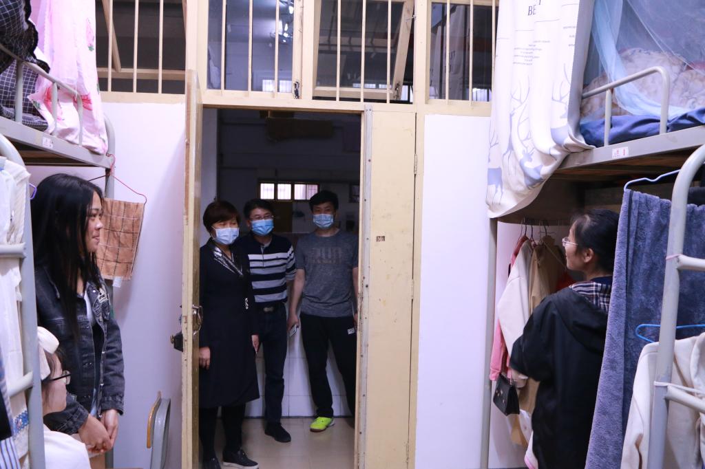 4月28日晚,教师教育学院领导班子及各班班主任、辅导员深入学生宿舍看望返校学生。每到一个宿舍,领导老师都与同学们进行亲切地交流,并提醒同学们要做好疫情防护工作,遵守学校防控规定,做好宿舍卫生,勤通风,勤洗手,不串舍,出门戴口罩,保持安全社交距离,同时要自觉做好学习规划,积极参与网上课程的学习,争取做到防护学习两不误。