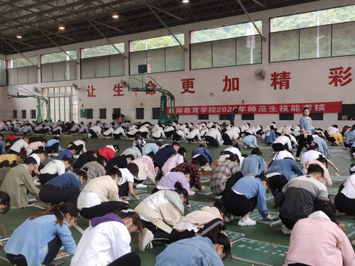 努力践行“实践取向”基本理念,加强教师教育学院师范生的教师基本技能,不断提高教师教育学院人才培养工作水平,进一步落实整体转型发展工作,突出基础教育教师培养的教育特色,实现培养合格的基础教育教师的目标,2020年9月8日至27日,教师教育学院举行2020年师范生教师基本技能考核。考核对象为2017级本科、2018级专科、16级小教五年制的学生,分为小学教育专业组和学前教育专业组进行考核。考核内容是教师口语、幼儿故事讲述、三笔字、幼儿歌曲弹唱、简笔画、儿童歌曲演唱、儿童舞蹈、列队和体操等。