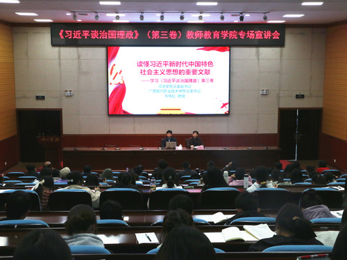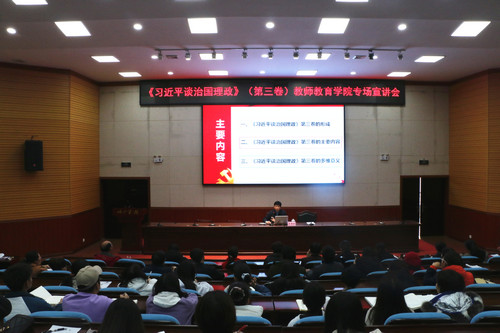 为进一步深入学习宣传贯彻《习近平谈治国理政》第三卷的重要论述精神,推动党的创新理论宣讲工作走深走实,12月8日,学校党委副书记韦伟松在弘毅楼1区205报告厅为教师教育学院师生开展《习近平谈治国理政》第三卷专场宣讲会。会议由教师教育学院党委书记李新富主持。