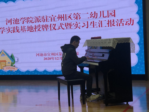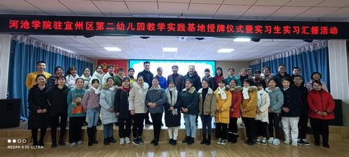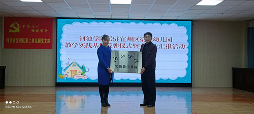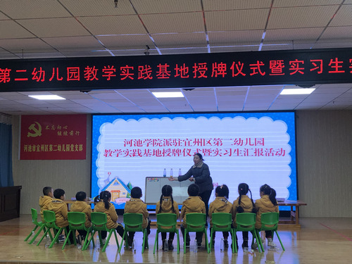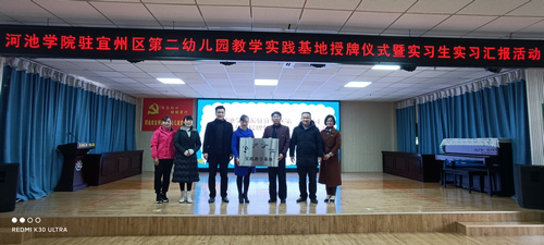 12月31日,河池学院驻宜州区第二幼儿园教学实践基地授牌仪式暨实习生实习汇报活动在宜州区第二幼儿园有序开展。河池学院教师教育学院党委书记李新富、副院长谭静、党委副书记王爱林以及教师教育学院学前专业部分教师参加了此次活动。