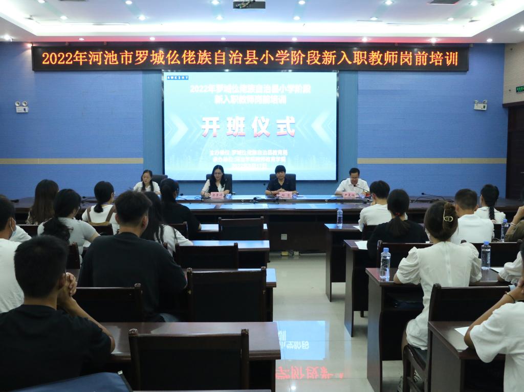 为贯彻落实国家、自治区关于全面深化新时代教师队伍建设改革的意见,结合罗城县教师培训发展规划,遵循基于学校、师德为先、分类施训、知行合一原则,引导新教师树立“立德树人”理念,自觉遵守职业规范,掌握教育教学理论,研习学科教学方法,形成教学基本能力,扣好职业生涯“第一粒扣子”,提高新教师岗位适应能力,8月17日,由罗城县教育局主办、河池学院教师教育学院承办的2022年罗城县小学阶段新入职教师岗前培训正式启动,并在河池学院图书馆122会议室举行了小学阶段新入职教师岗前培训班开班仪式。教师教育学院院长邓琴、罗城县教育局教师培训中心主任梁素娟出席开班仪式并作重要讲话,2022年罗城小学阶段新入职58名教师参加开班仪式。开班仪式由教师教育学院副院长尹晨祖主持。