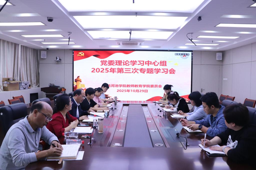 10月29日下午,教师教育学院党委理论学习中心组第三次专题学习会在格致楼907室召开。学院党委理论学习中心组全体成员参加,学院副院长樊仲光、专职组织员、学院纪委委员、各党支部书记列席会议。