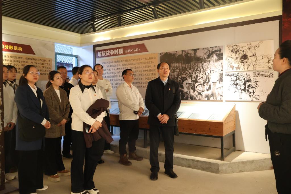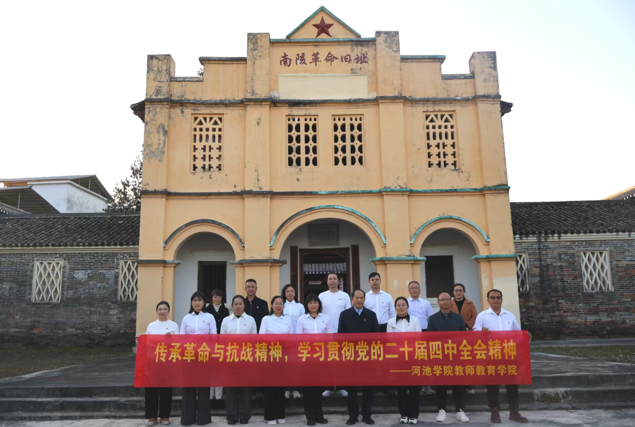 为深刻领会习近平总书记在纪念中国人民抗日战争暨世界反法西斯战争胜利80周年大会上的重要讲话所强调的:传承和弘扬伟大抗战精神,踔厉奋发、勇毅前行,为以中国式现代化全面推进强国建设、民族复兴伟业而团结奋斗。同时,通过传承弘扬伟大抗战精神,将其转化为团结的力量、奋斗的动力、开创未来的信念,在贯彻落实好党的二十届四中全会精神和谋划好“十五五”发展规划上强化担当、主动作为、笃行致新。为此,2025年11月29日至30日,本学院党委组织教职工党员等赴南宁市昆仑关战役纪念馆和上林县南陔革命旧址,开展以“传承革命与抗战精神,学习贯彻党的二十届四中全会精神”为主题的党日活动。