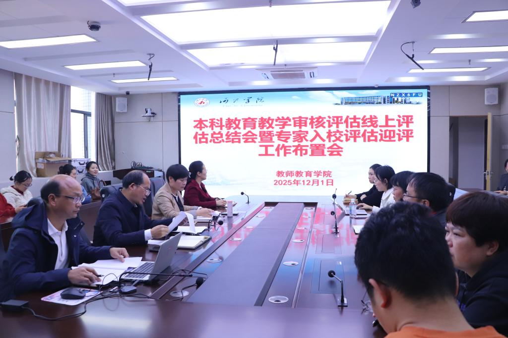 2025年12月1日,教师教育学院召开本科教育教学审核评估线上评估总结会暨专家入校评估迎评工作布置会。全体教职工参会。