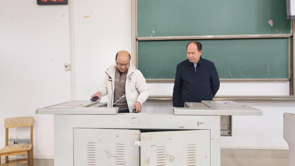 2月28日,为确保新学期教学工作平稳有序开展,我院党委书记韦晖、副院长樊仲光等院领导深入各教学楼,对新学期教室教学设备准备情况进行了全面细致的专项检查。