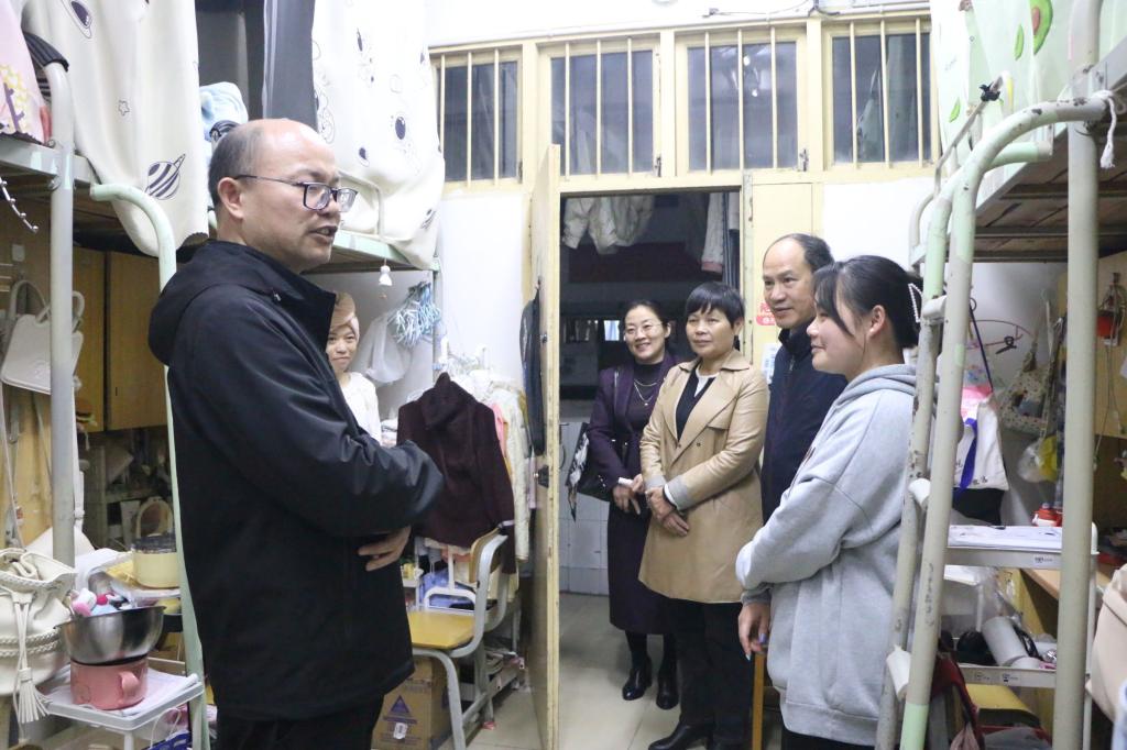 新学期伊始,为全面了解学生返校后的思想动态与实际需求,传递学校的关怀与温暖,3月1日晚,学校副校长贺卫国在教师教育学院党委书记韦晖、院长邓琴、党委副书记郭英莉的陪同下,带领辅导员及班主任深入学生宿舍走访慰问返校学子。