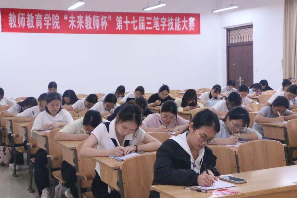 4月8日下午,教师教育学院在弘毅楼和求知楼教室举行了“未来教师杯”第十七届三笔字技能大赛。学院领导班子到场指导,共有500余人次报名参赛。