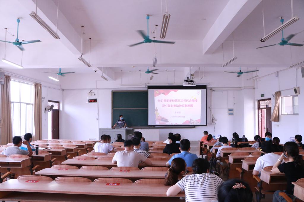 5月6日,教师教育学院在弘毅楼2区307教室举行学校第三次党代会精神专题学习宣讲会。由学院党委书记李新富宣讲,全院教职工参加了本次会议。