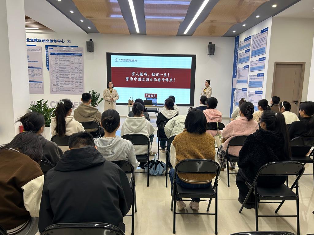 为扎实推进毕业生就业工作,搭建校企精准对接平台,教师教育学院于近日组织2026届毕业生参加了广西育铭教育科技有限公司与东莞市卓艺教育咨询服务有限公司两场专场招聘宣讲会。学院相关领导、就业辅导员、班主任全程参与,做好组织协调与就业指导工作。